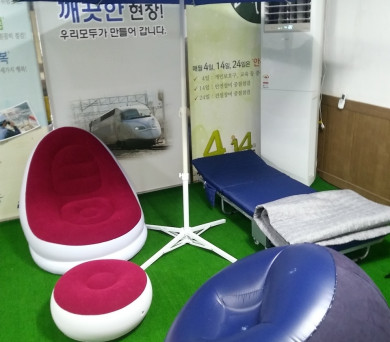 에어 소파라서 몸무게가 100키로 넘어가는 사람이 앉으면 터질까 걱정이지만 저희 회사에는 그 정도 비만은 없으시니 아무 문제 없을 것 같아요.