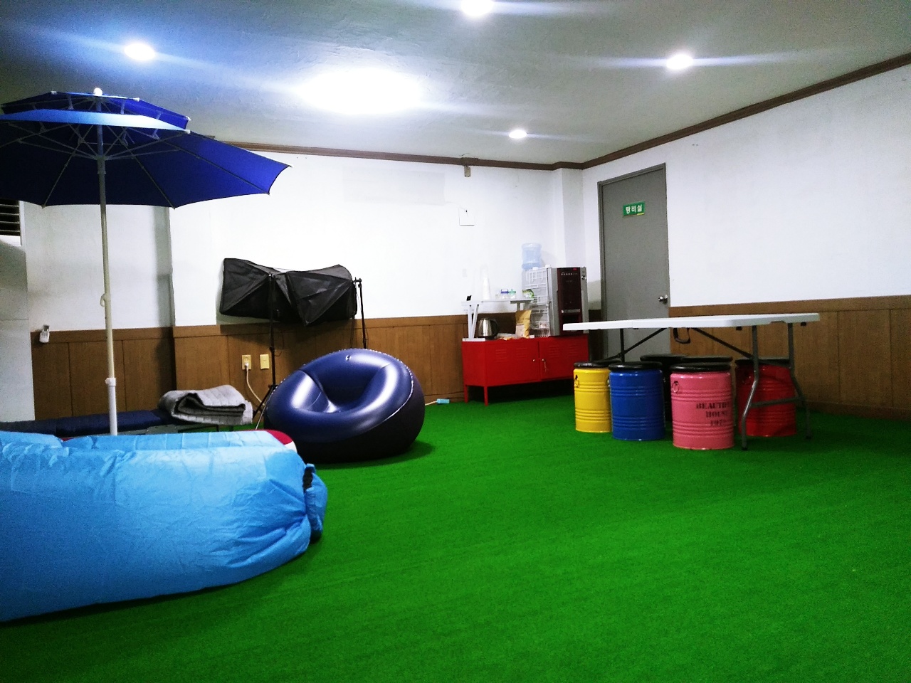 사진 옆에 낙하산처럼 놓여 있는 건 완성 못한 에어 소파인데요. 바람 좋은 날에 나가서 본래의 모습을 찾게 해줄 예정입니다. 요즘엔 비가 와서